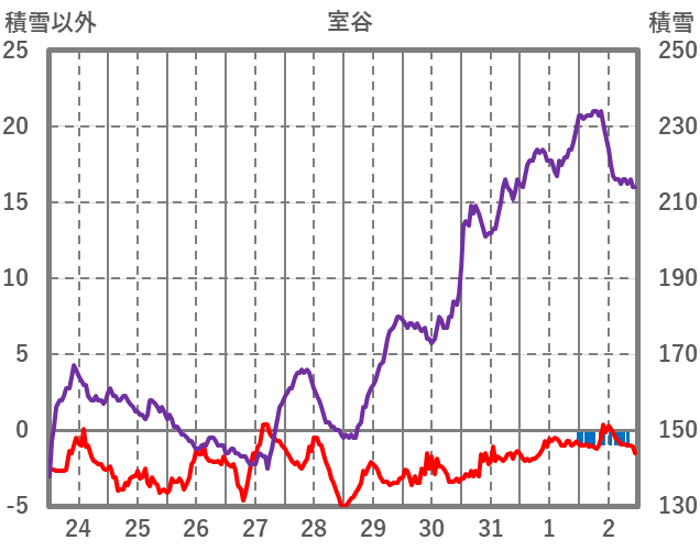 | 日 | 時 | 気温 | 降水 | 風向/風速 | 日照 | 積雪 | 降雪 |