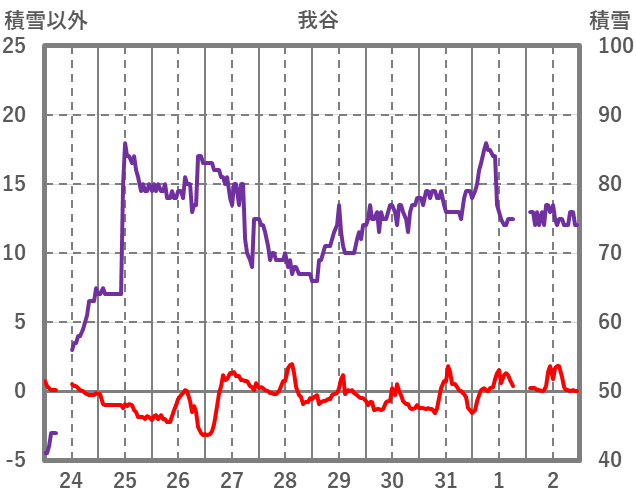| 日 | 時 | 気温 | 降水 | 風向/風速 | 日照 | 積雪 | 降雪 |