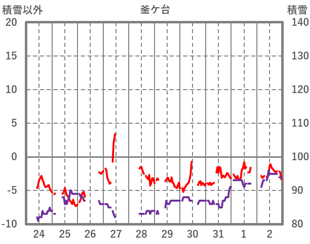 | 日 | 時 | 気温 | 降水 | 風向/風速 | 日照 | 積雪 | 降雪 |