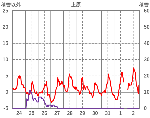 | 日 | 時 | 気温 | 降水 | 風向/風速 | 日照 | 積雪 | 降雪 |