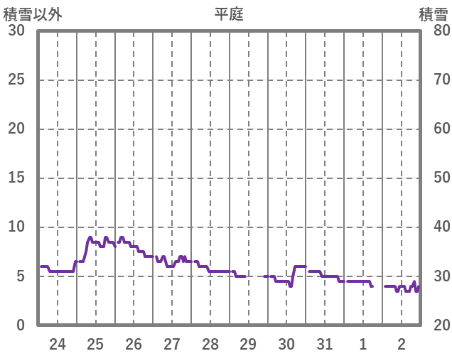 | 日 | 時 | 気温 | 降水 | 風向/風速 | 日照 | 積雪 | 降雪 |