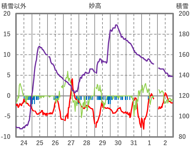 | 日 | 時 | 気温 | 降水 | 風向/風速 | 日照 | 積雪 | 降雪 |