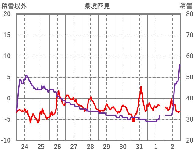 | 日 | 時 | 気温 | 降水 | 風向/風速 | 日照 | 積雪 | 降雪 |