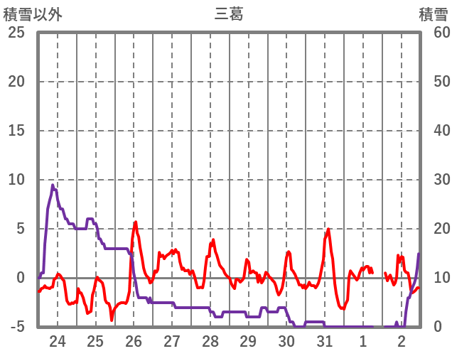 | 日 | 時 | 気温 | 降水 | 風向/風速 | 日照 | 積雪 | 降雪 |