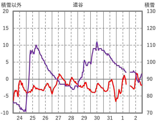 | 日 | 時 | 気温 | 降水 | 風向/風速 | 日照 | 積雪 | 降雪 |
