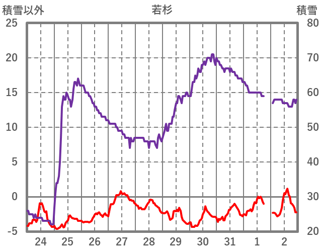 | 日 | 時 | 気温 | 降水 | 風向/風速 | 日照 | 積雪 | 降雪 |