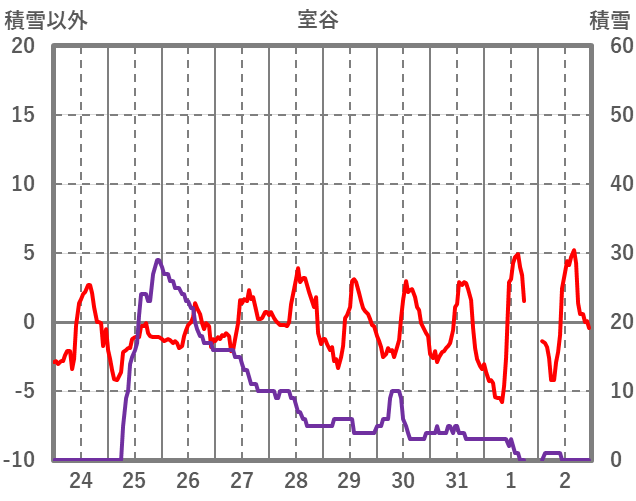 | 日 | 時 | 気温 | 降水 | 風向/風速 | 日照 | 積雪 | 降雪 |