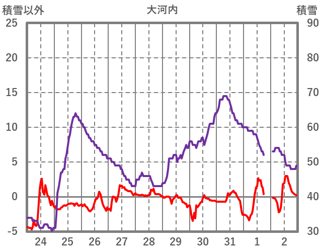 | 日 | 時 | 気温 | 降水 | 風向/風速 | 日照 | 積雪 | 降雪 |