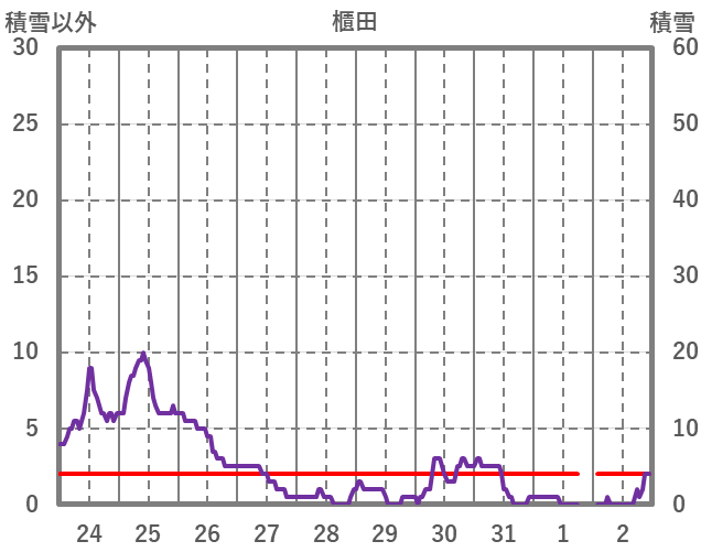 | 日 | 時 | 気温 | 降水 | 風向/風速 | 日照 | 積雪 | 降雪 |
