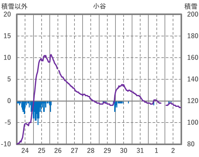 | 日 | 時 | 気温 | 降水 | 風向/風速 | 日照 | 積雪 | 降雪 |