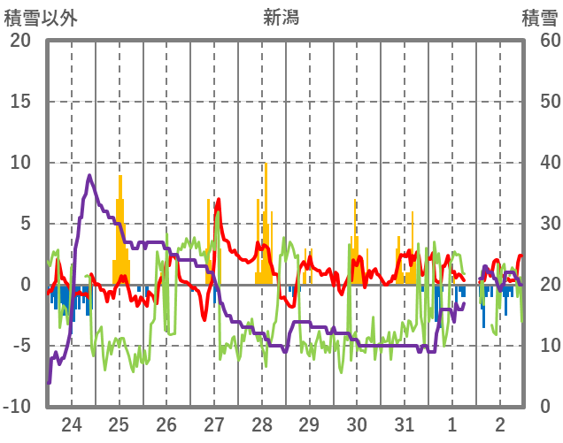 | 日 | 時 | 気温 | 降水 | 風向/風速 | 日照 | 積雪 | 降雪 |