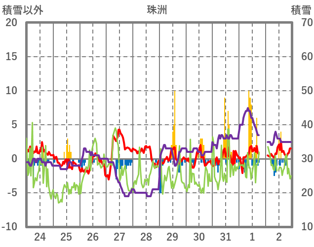 | 日 | 時 | 気温 | 降水 | 風向/風速 | 日照 | 積雪 | 降雪 |