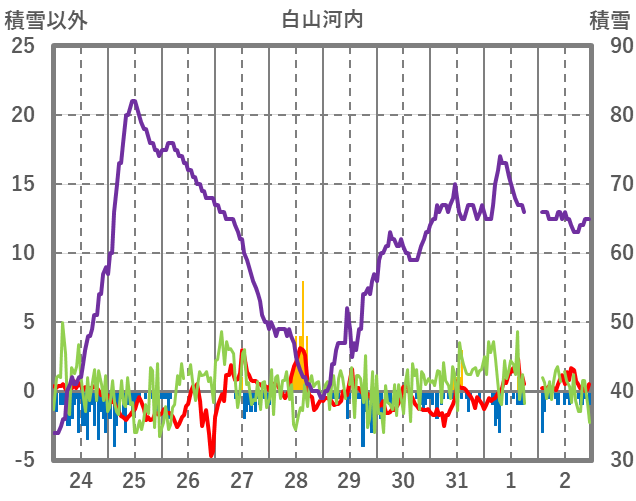| 日 | 時 | 気温 | 降水 | 風向/風速 | 日照 | 積雪 | 降雪 |