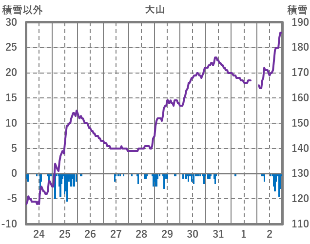 | 日 | 時 | 気温 | 降水 | 風向/風速 | 日照 | 積雪 | 降雪 |