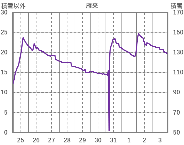 | 日 | 時 | 気温 | 降水 | 風向/風速 | 日照 | 積雪 | 降雪 |
