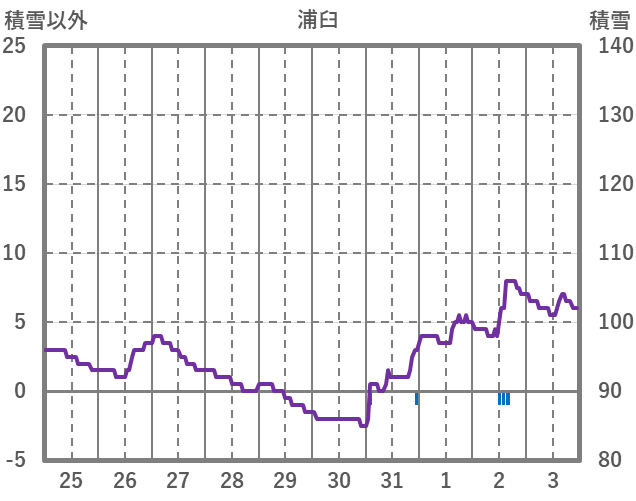 | 日 | 時 | 気温 | 降水 | 風向/風速 | 日照 | 積雪 | 降雪 |