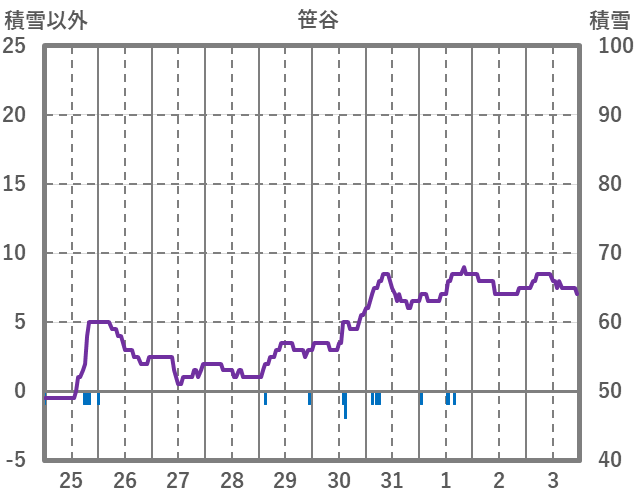 | 日 | 時 | 気温 | 降水 | 風向/風速 | 日照 | 積雪 | 降雪 |