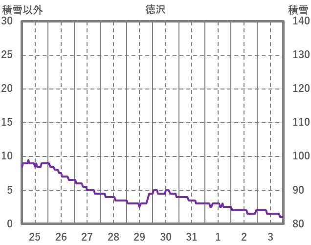 | 日 | 時 | 気温 | 降水 | 風向/風速 | 日照 | 積雪 | 降雪 |