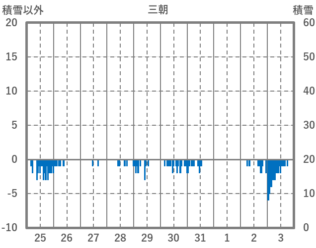 | 日 | 時 | 気温 | 降水 | 風向/風速 | 日照 | 積雪 | 降雪 |