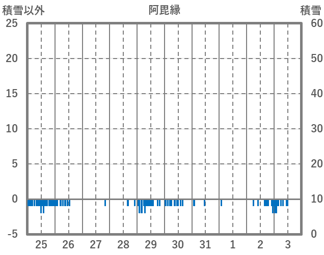 | 日 | 時 | 気温 | 降水 | 風向/風速 | 日照 | 積雪 | 降雪 |