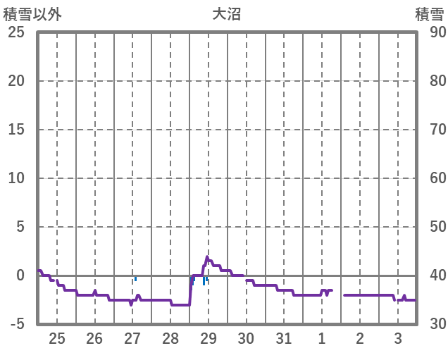 | 日 | 時 | 気温 | 降水 | 風向/風速 | 日照 | 積雪 | 降雪 |