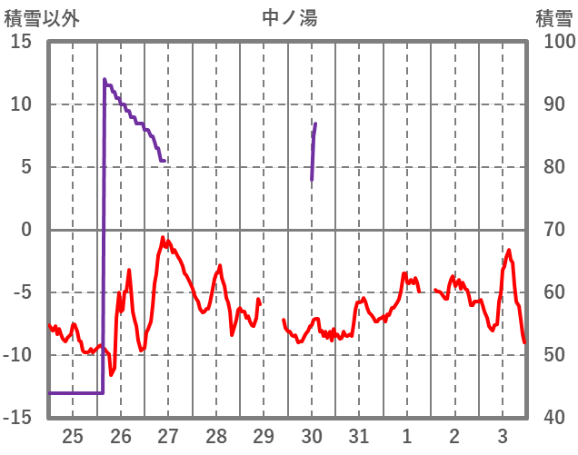 | 日 | 時 | 気温 | 降水 | 風向/風速 | 日照 | 積雪 | 降雪 |