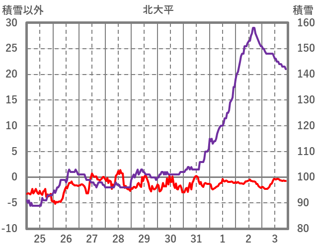 | 日 | 時 | 気温 | 降水 | 風向/風速 | 日照 | 積雪 | 降雪 |
