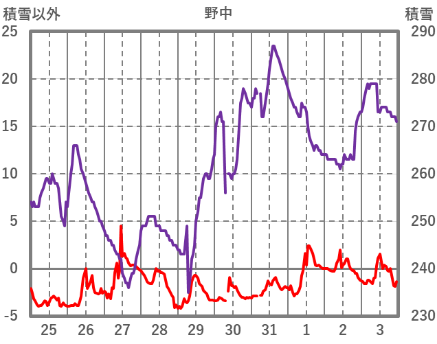 | 日 | 時 | 気温 | 降水 | 風向/風速 | 日照 | 積雪 | 降雪 |