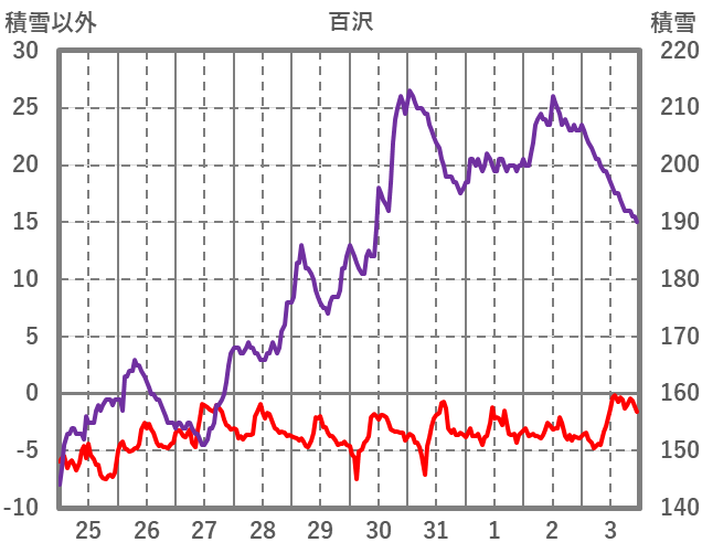 | 日 | 時 | 気温 | 降水 | 風向/風速 | 日照 | 積雪 | 降雪 |