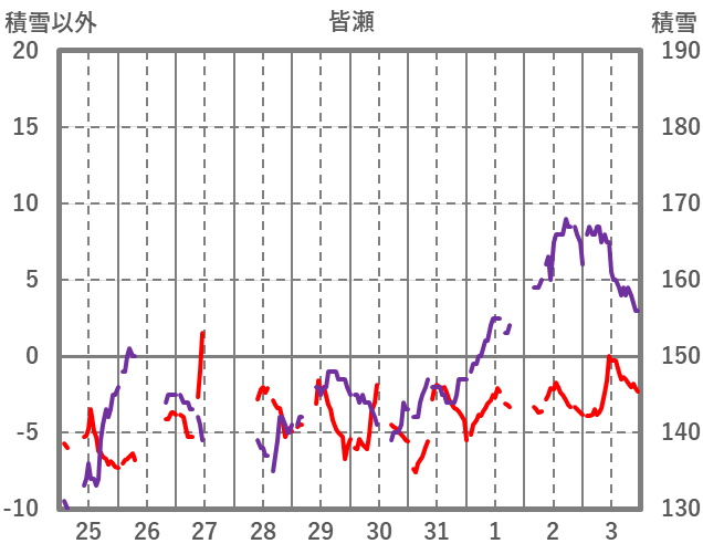 | 日 | 時 | 気温 | 降水 | 風向/風速 | 日照 | 積雪 | 降雪 |
