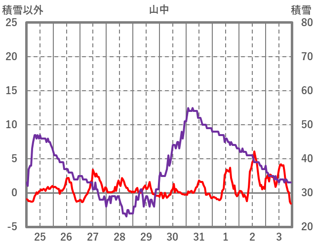 | 日 | 時 | 気温 | 降水 | 風向/風速 | 日照 | 積雪 | 降雪 |