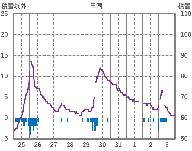 | 日 | 時 | 気温 | 降水 | 風向/風速 | 日照 | 積雪 | 降雪 |