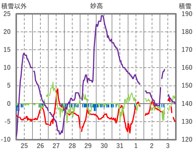 | 日 | 時 | 気温 | 降水 | 風向/風速 | 日照 | 積雪 | 降雪 |