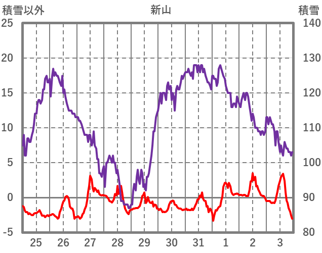 | 日 | 時 | 気温 | 降水 | 風向/風速 | 日照 | 積雪 | 降雪 |