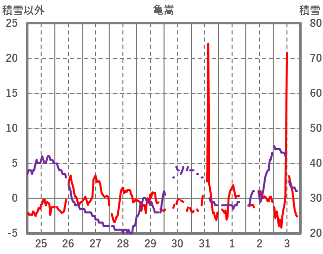 | 日 | 時 | 気温 | 降水 | 風向/風速 | 日照 | 積雪 | 降雪 |
