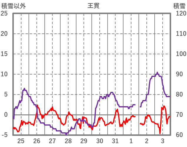 | 日 | 時 | 気温 | 降水 | 風向/風速 | 日照 | 積雪 | 降雪 |
