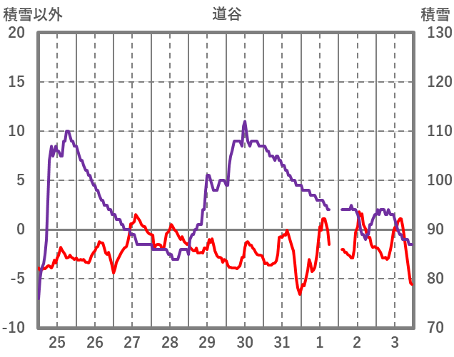 | 日 | 時 | 気温 | 降水 | 風向/風速 | 日照 | 積雪 | 降雪 |