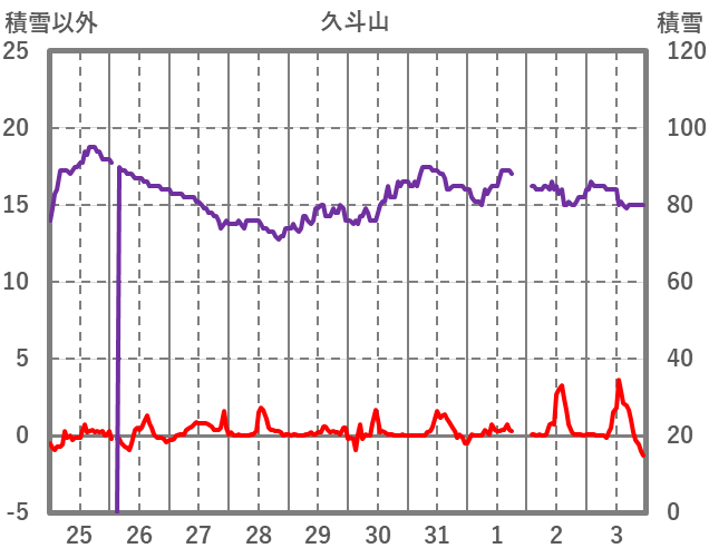 | 日 | 時 | 気温 | 降水 | 風向/風速 | 日照 | 積雪 | 降雪 |