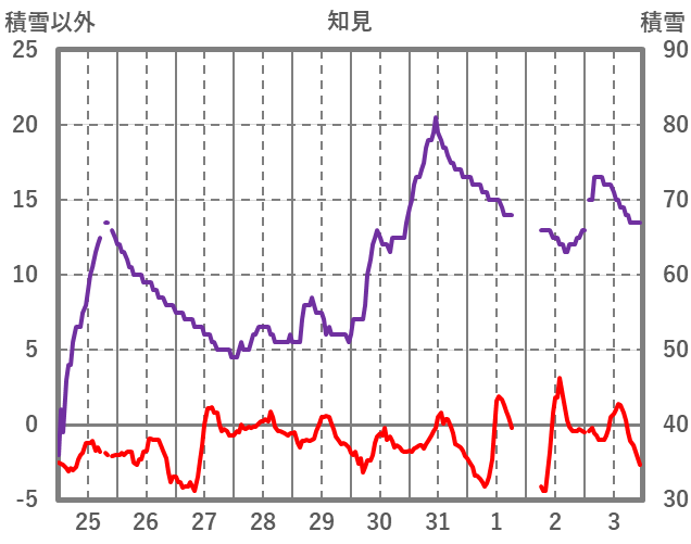 | 日 | 時 | 気温 | 降水 | 風向/風速 | 日照 | 積雪 | 降雪 |