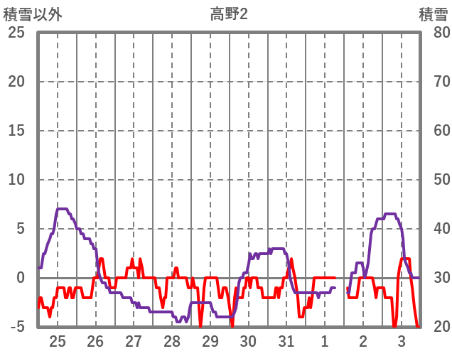 | 日 | 時 | 気温 | 降水 | 風向/風速 | 日照 | 積雪 | 降雪 |