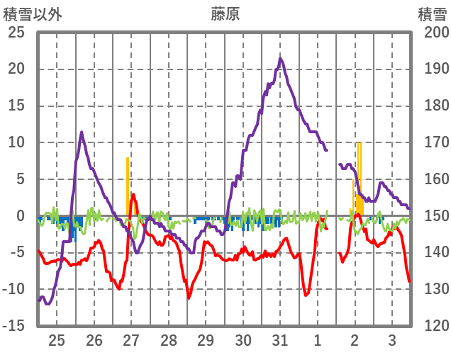 | 日 | 時 | 気温 | 降水 | 風向/風速 | 日照 | 積雪 | 降雪 |