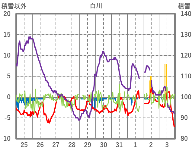 | 日 | 時 | 気温 | 降水 | 風向/風速 | 日照 | 積雪 | 降雪 |