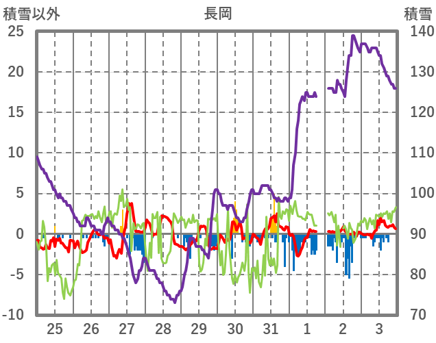 | 日 | 時 | 気温 | 降水 | 風向/風速 | 日照 | 積雪 | 降雪 |