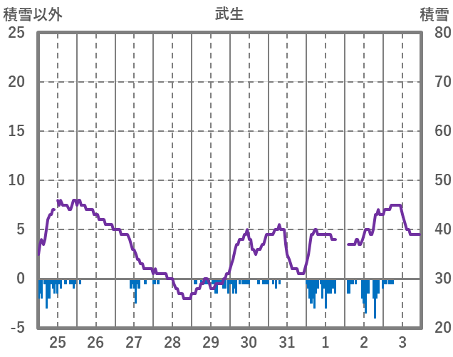 | 日 | 時 | 気温 | 降水 | 風向/風速 | 日照 | 積雪 | 降雪 |