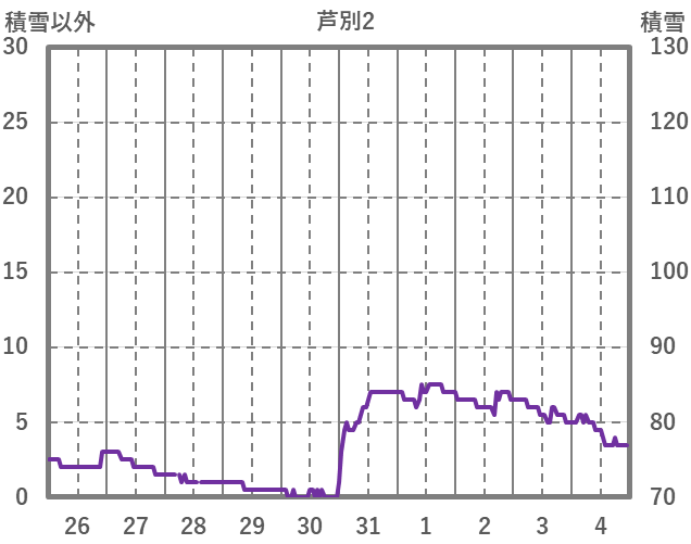 | 日 | 時 | 気温 | 降水 | 風向/風速 | 日照 | 積雪 | 降雪 |