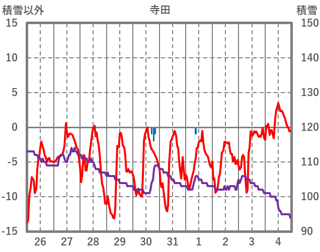 | 日 | 時 | 気温 | 降水 | 風向/風速 | 日照 | 積雪 | 降雪 |