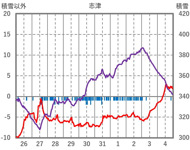 | 日 | 時 | 気温 | 降水 | 風向/風速 | 日照 | 積雪 | 降雪 |