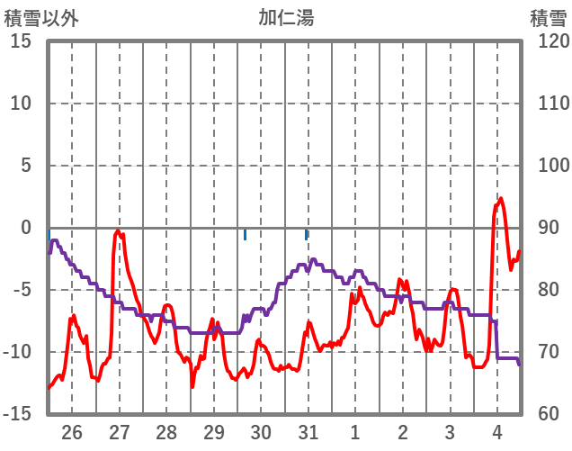 | 日 | 時 | 気温 | 降水 | 風向/風速 | 日照 | 積雪 | 降雪 |