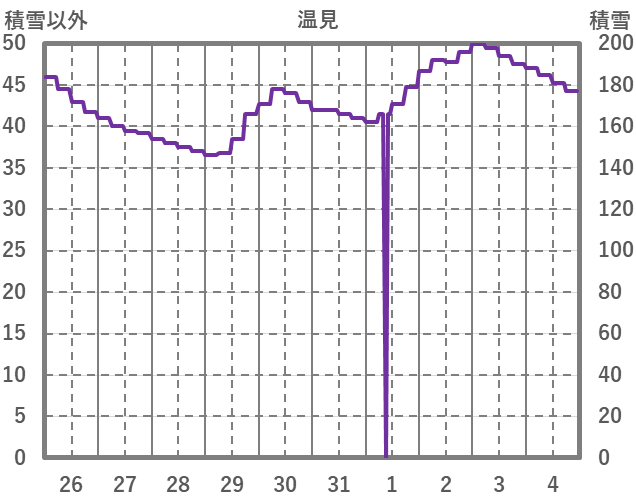 | 日 | 時 | 気温 | 降水 | 風向/風速 | 日照 | 積雪 | 降雪 |