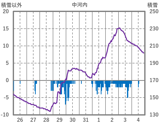 | 日 | 時 | 気温 | 降水 | 風向/風速 | 日照 | 積雪 | 降雪 |